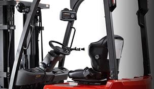 A new fully integrated, 7" Multifunction Color Touchscreen Display is available on select Raymond forklifts.